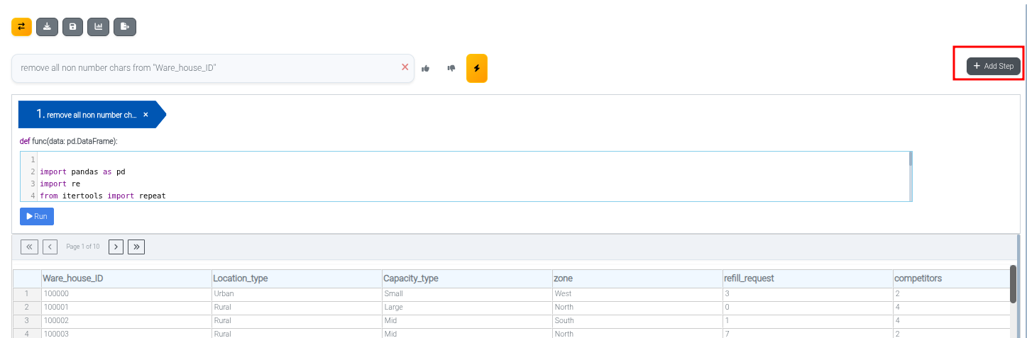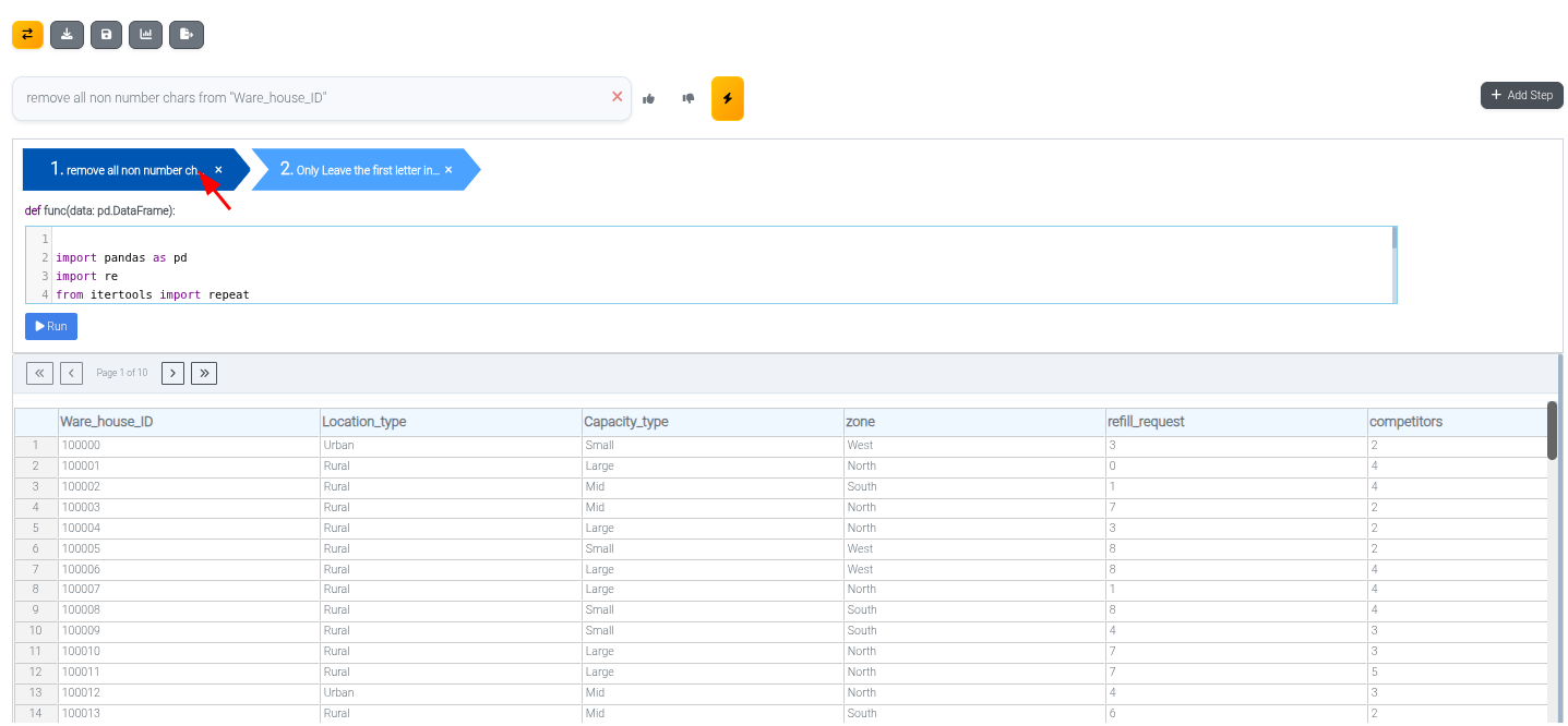Click the "Add Step" button on the right-hand side to create a new tab. This creates a second step in your pipeline.