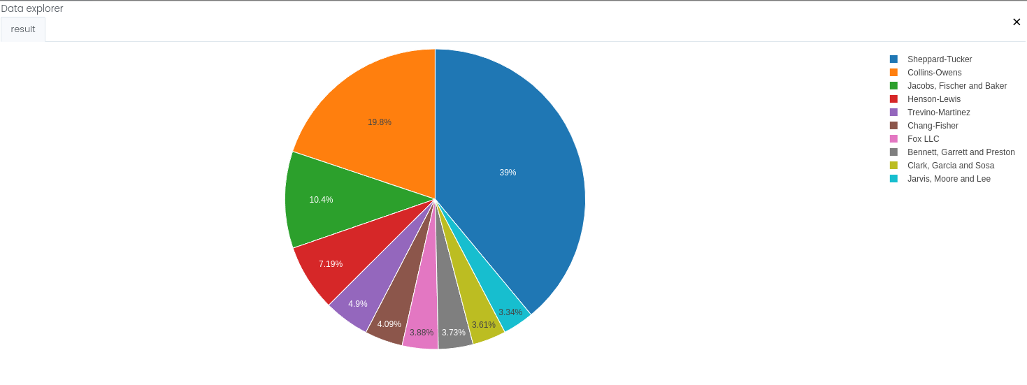 We can now continue with this dataset and create a pie chart describing the top ten suppliers according to the aggregated spending. This chart will allow you to understand the business even better.