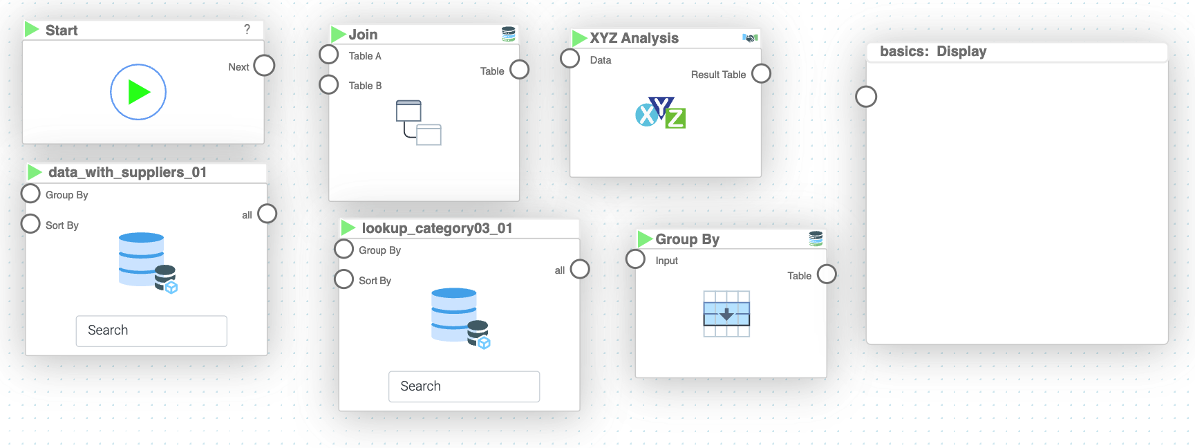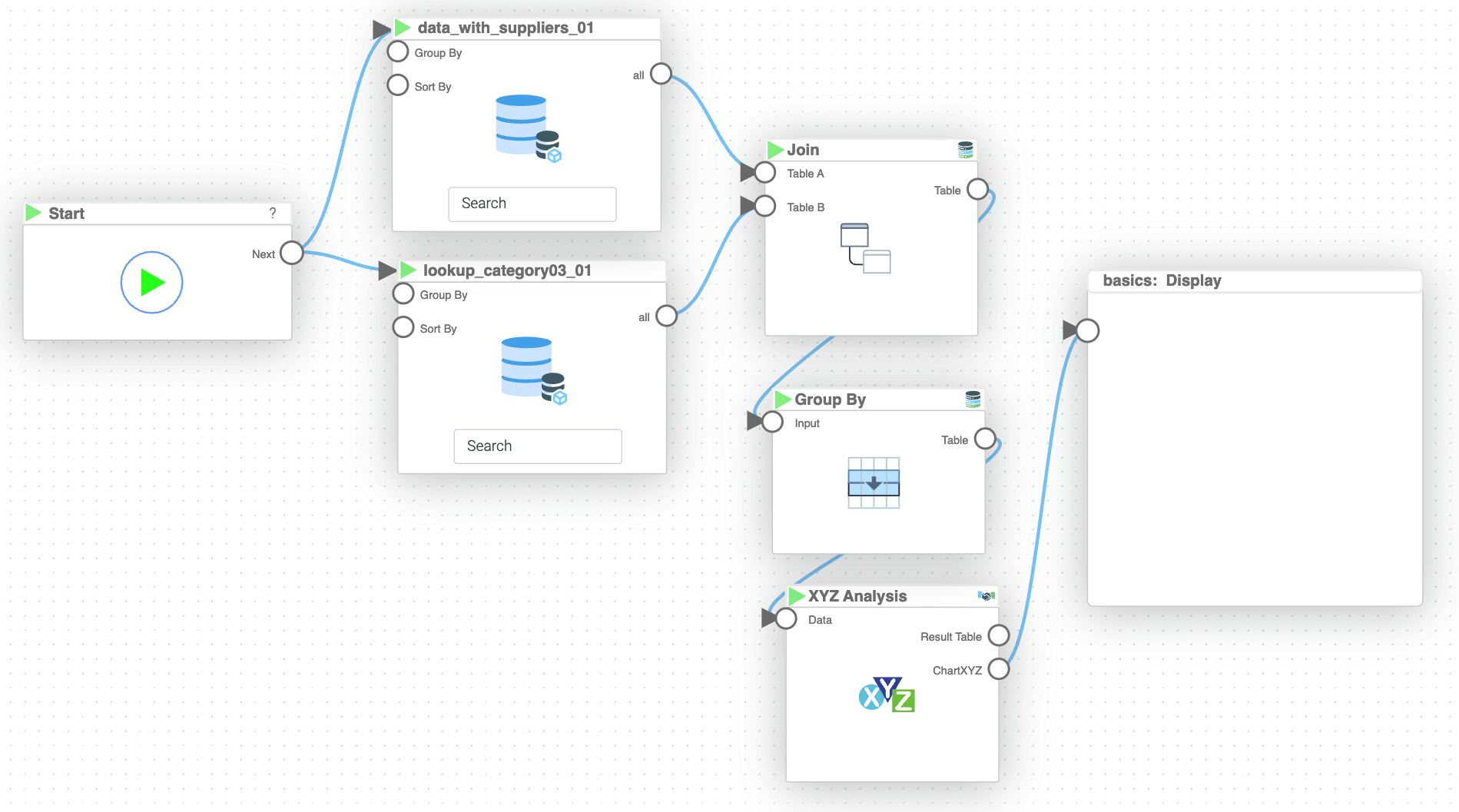 - Next step is to connect the result from "Group By" to "XYZ Analysis" BLOX and feed the inputs field with appropriate columns. However, as a challenge, you have to figure out the columns for the "XYZ Analysis" BLOX