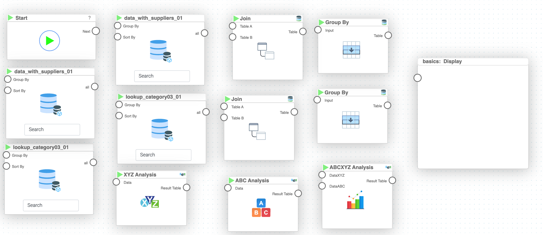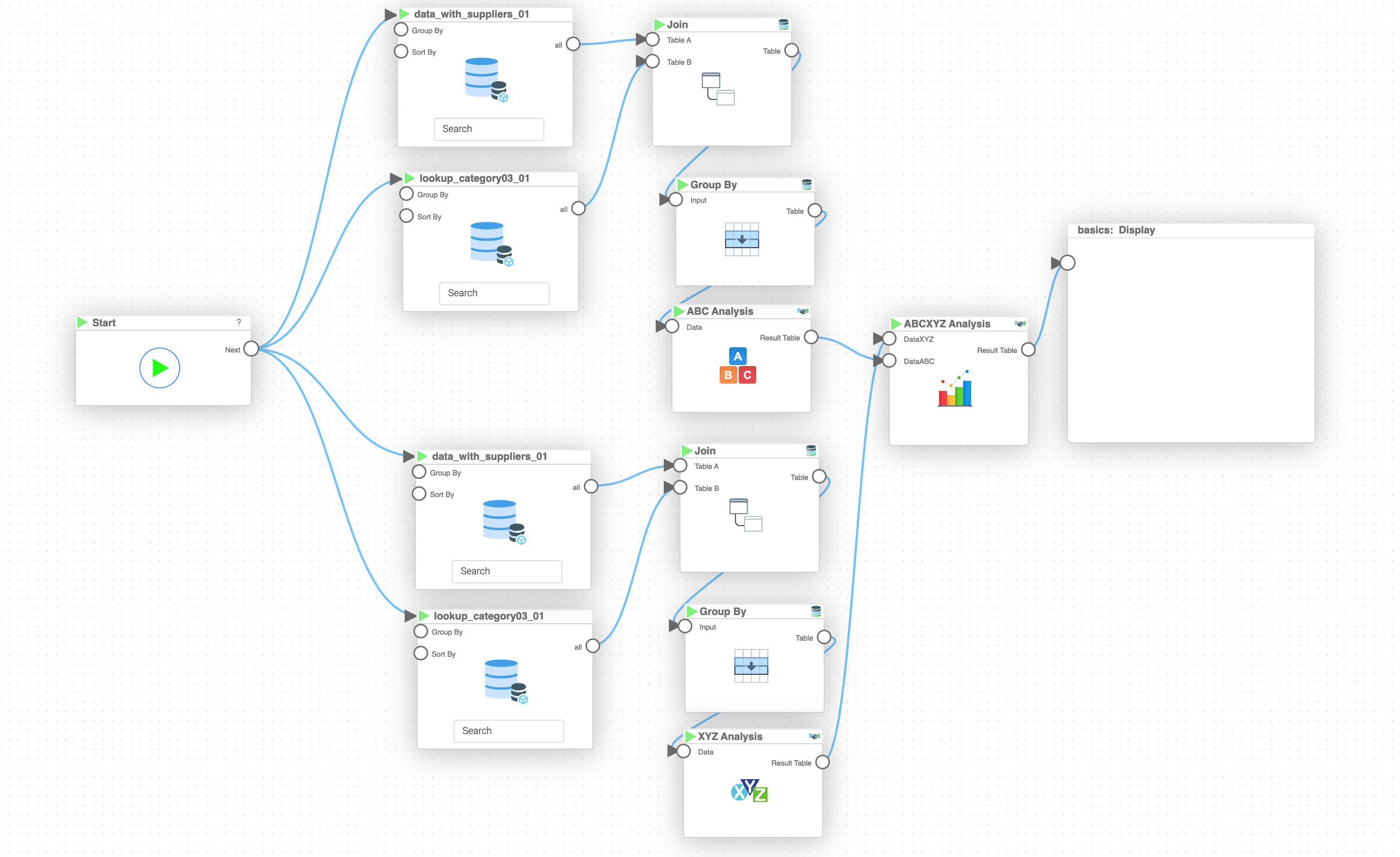 The final step is to create an overall ABCXYZ Analysis which is derived from both ABC and XYZ Analysis BLOX. It is fairly simple to do so, if you have the mentioned BLOX already prepared, as the only thing left to do is to connect the outputs to the ABCXYZ BLOX to receive meaningful results.
