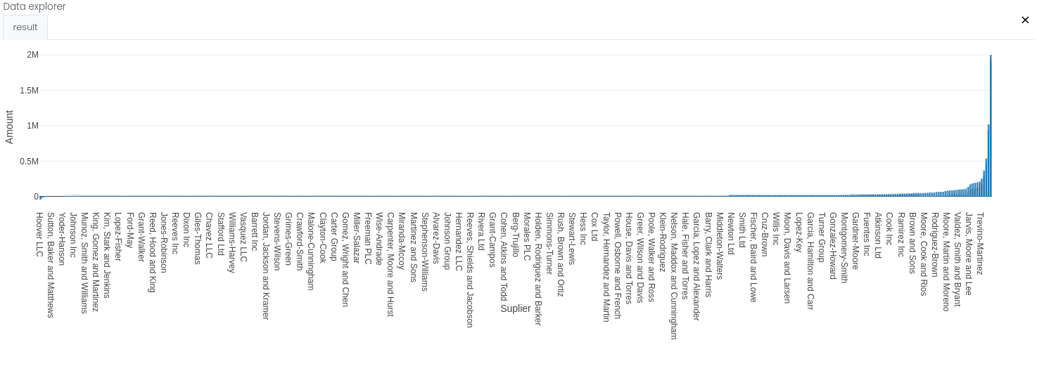 Now that you know the general concepts behind creating logics, you can go on and try to build a more complex logic that will display suppliers and their corresponding spending in a bar chart!